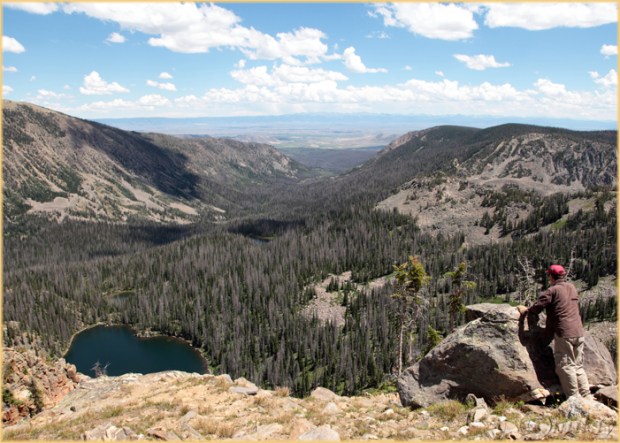 Atop a glacial cirque with Bighorn Lake and Lone Pine Creek valley below – Mount Zirkel Wilderness, Colorado