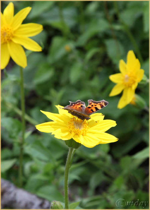 Butterfly and Heartleaf Arnica, Northeast Ridge trail – Parkview Mountain, Colorado