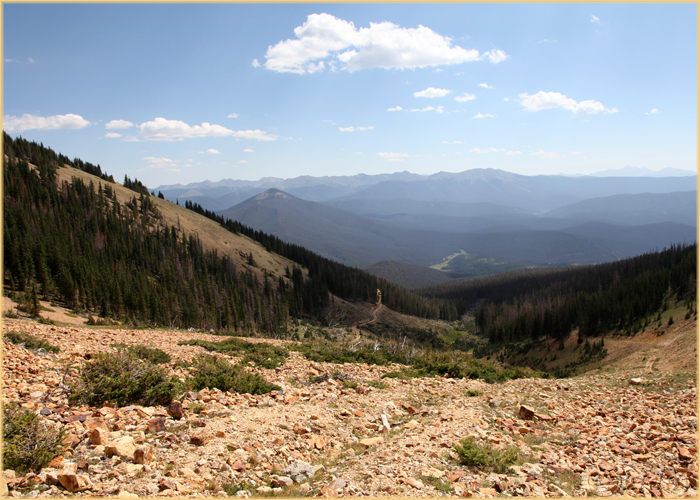 Back on the trail (view of the valley below), Southeast Ridge trail – Parkview Mountain, Colorado