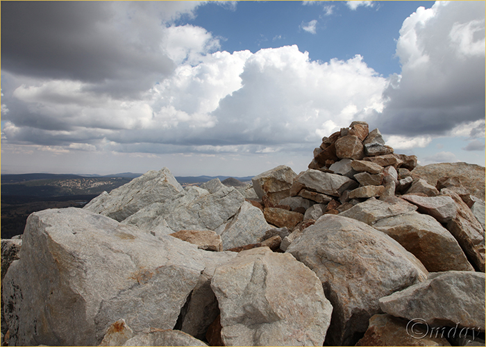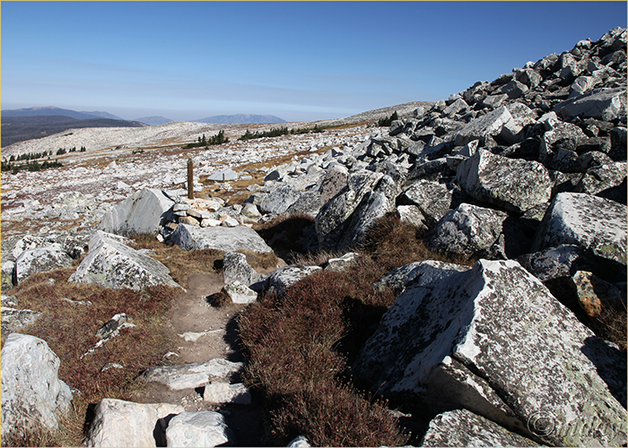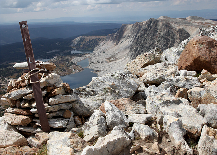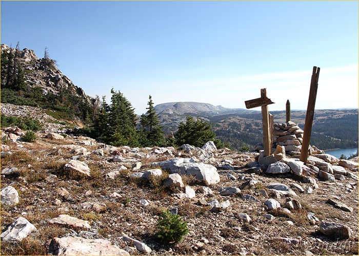 Stone marker, Medicine Bow Peak from Lewis Lake – Snowy Range, Wyoming
