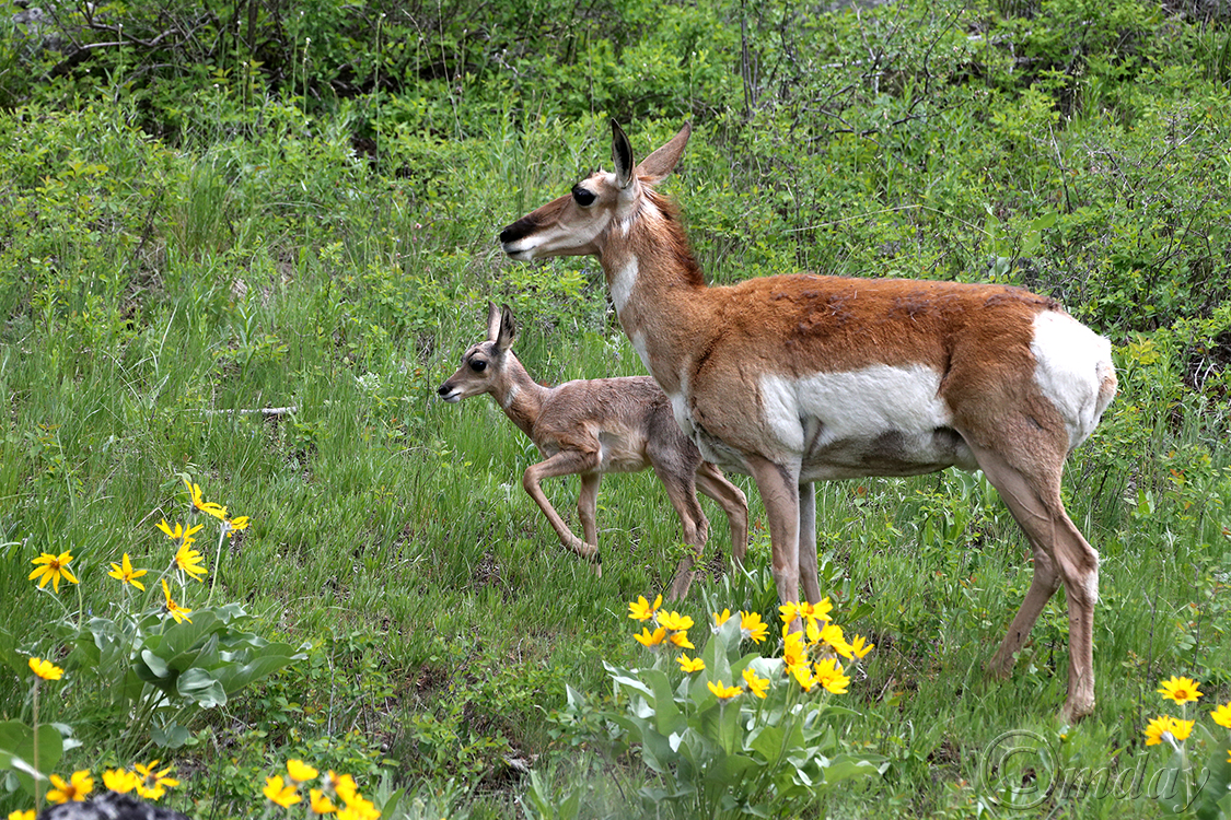 6.1DX0253Pronghorn&FawnYNP'14(7.5x150rrcpywrt)Pronghorn and Fawn, Slough Creek Trail – Yellowstone National Park, Wyoming