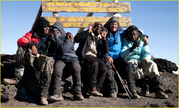 Celebrating with companions, Uhuru Peak – Kilimanjaro National Park, Tanzania