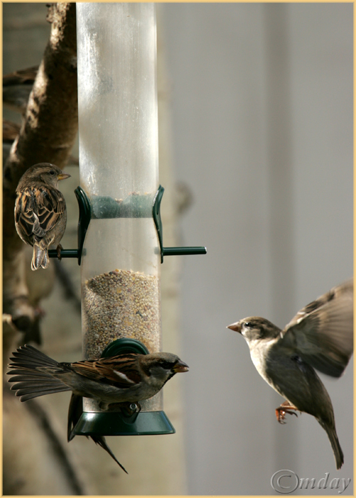 House Sparrows at our bird feeder – Laramie, Wyoming