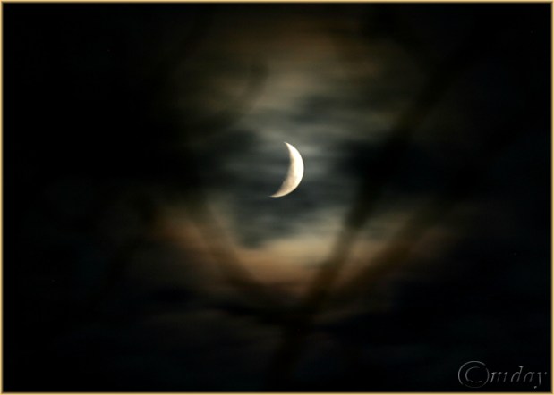 Night time with crescent-shaped moon – Laramie, Wyoming