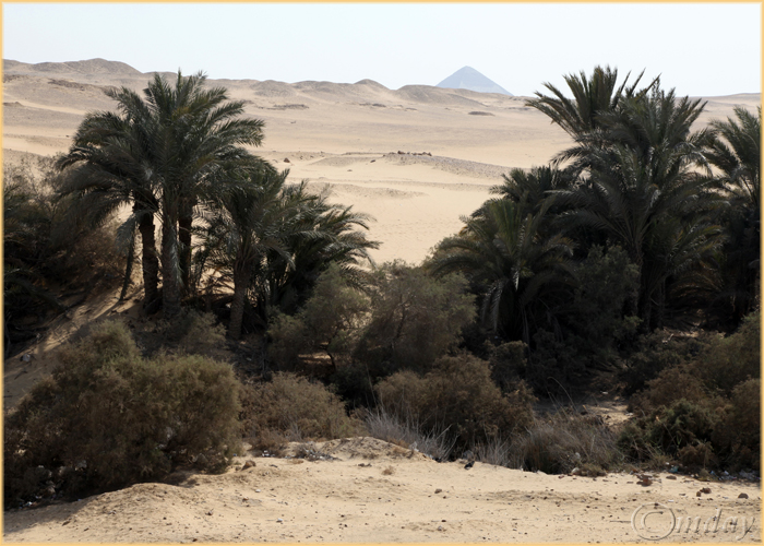 Oasis with the Red Pyramid of 4th Dynasty King Snofru (2575-2551 BC) in the background – Dahshur, Egypt