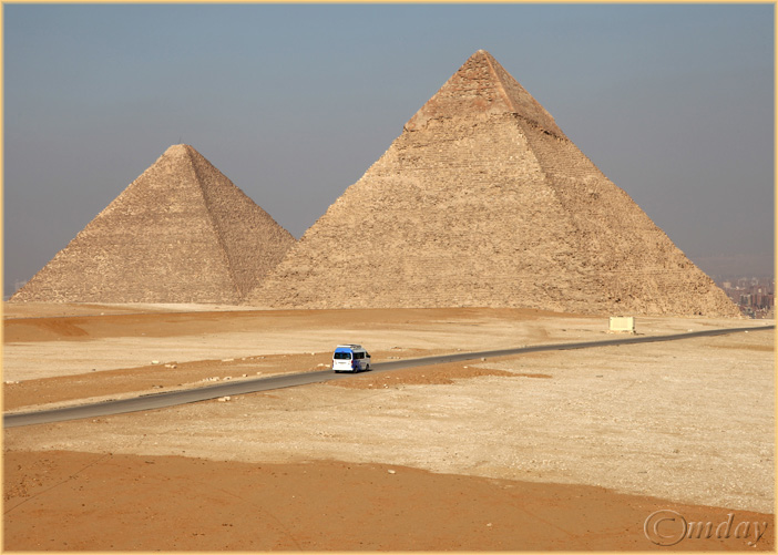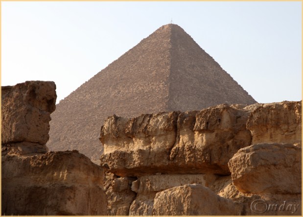 The pyramids of the Giza Plateau (the Pyramid of Khafre is in the center) – Giza, Egypt