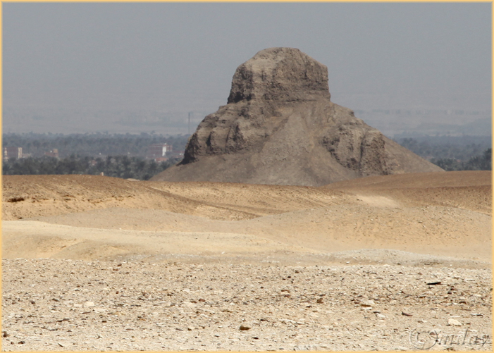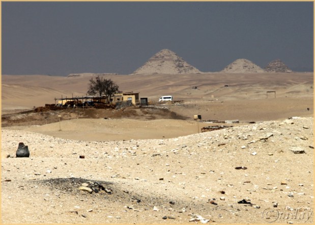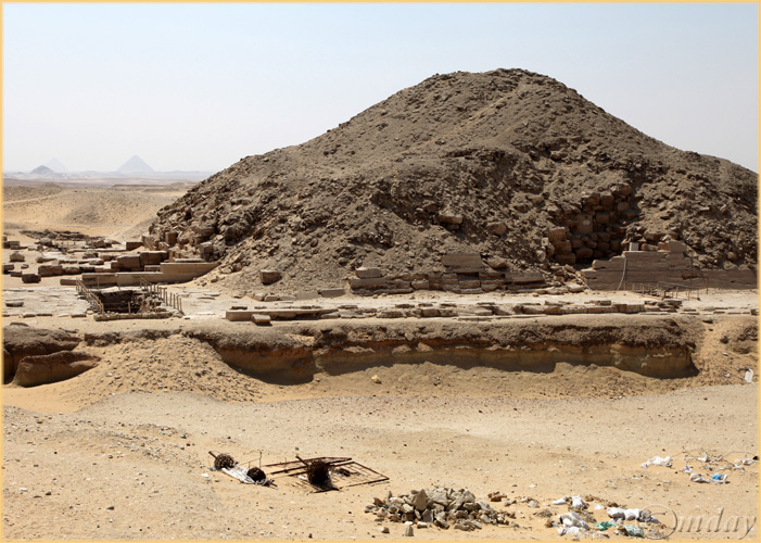 From left to right are the pyramids of 5th Dynasty Kings Sahure (2458-2446 BC), Nyuserre (2416-2392 BC), and Neferirkare (2446-2426 BC) – Abusir, Egypt