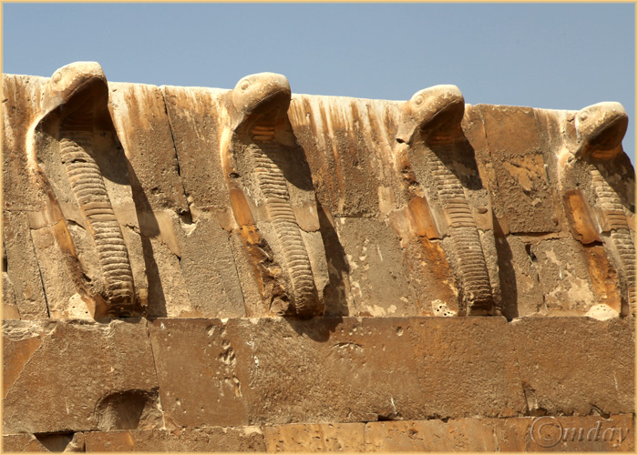 Frieze of cobras (protective symbols) in the courtyard of the Step Mastaba of King Djoser – Saqqara, Egypt