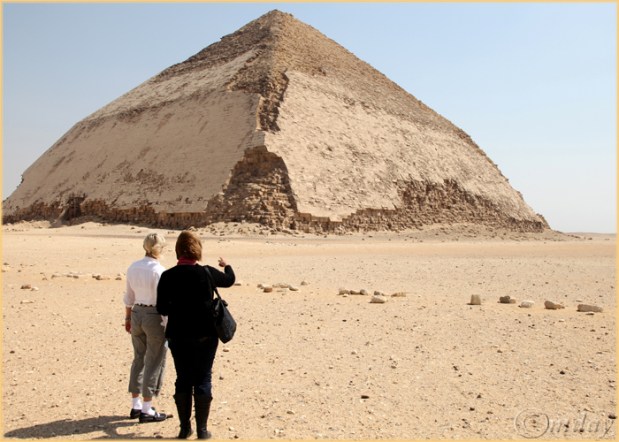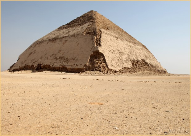 The Bent Pyramid of King Snofru (considered to be the first “true” smooth-sided pyramid but only partially successful) – Dahshur, Egypt