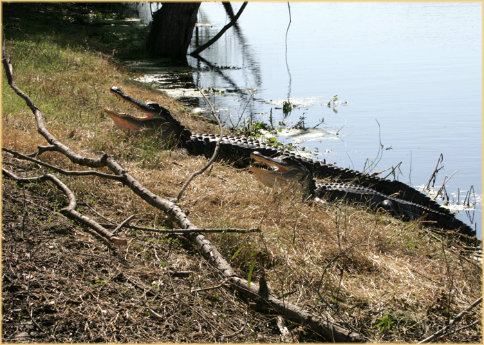 In the fall of 2006 I was treated for prostate cancer at the M.D. Anderson Cancer Center in Houston, Texas. Though the treatments were inconvenient (42 proton treatments over eight weeks) they generally only lasted about 45 minutes each week day. That left lots of time “and energy” to explore the area. One of the gems I discovered was Brazos Bend State Park and its large population of gators — the park is located about thirty miles or so southwest of Houston. During my stay in Houston at least once each week I would stroll the grounds of this very special place and hang out with the alligators, as well as with a variety of other reptiles and birds. Below are a few photos.
